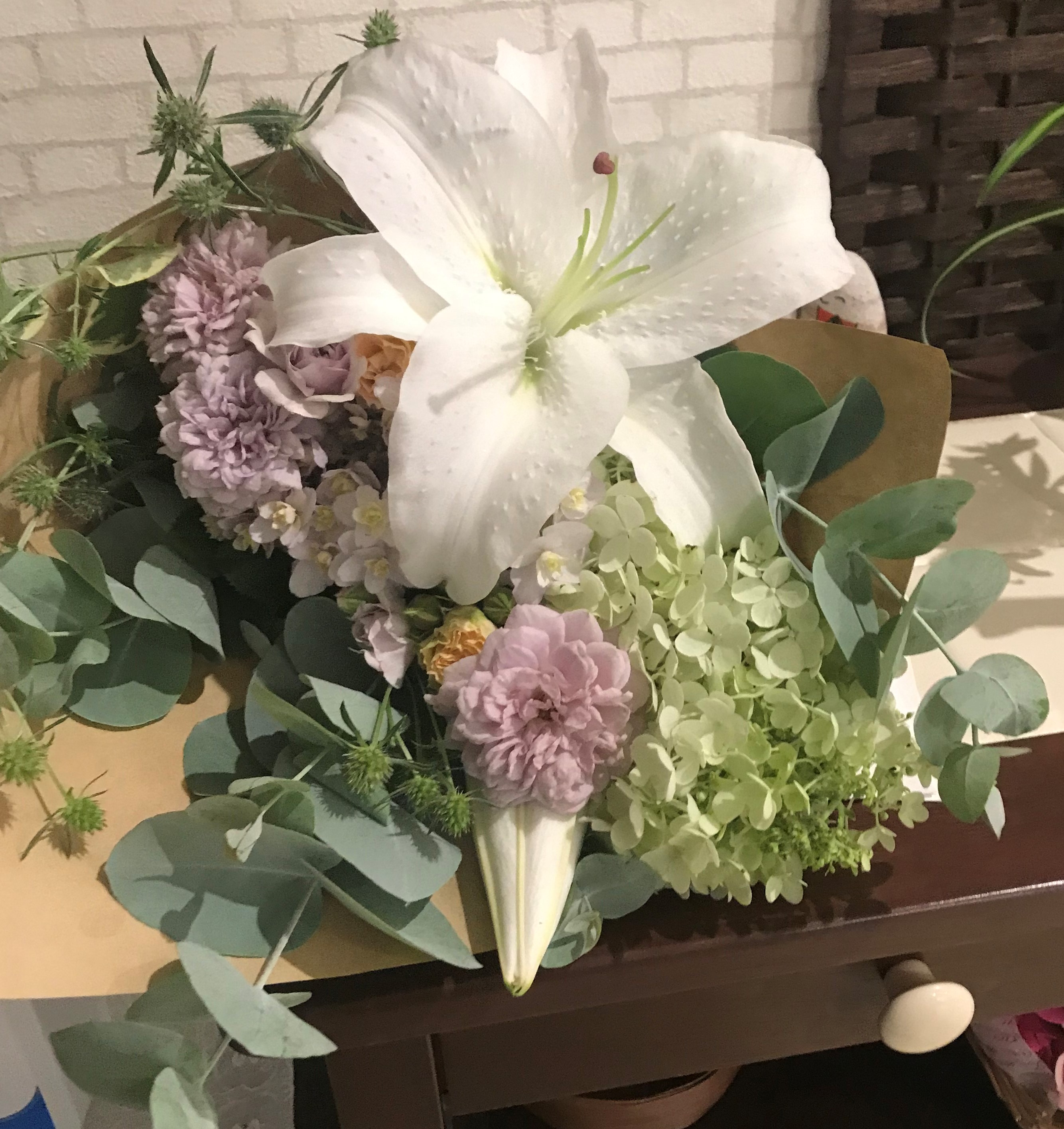 ず~っと前に手作りブーケを持ってきてくれた以前の職場の同僚です。
