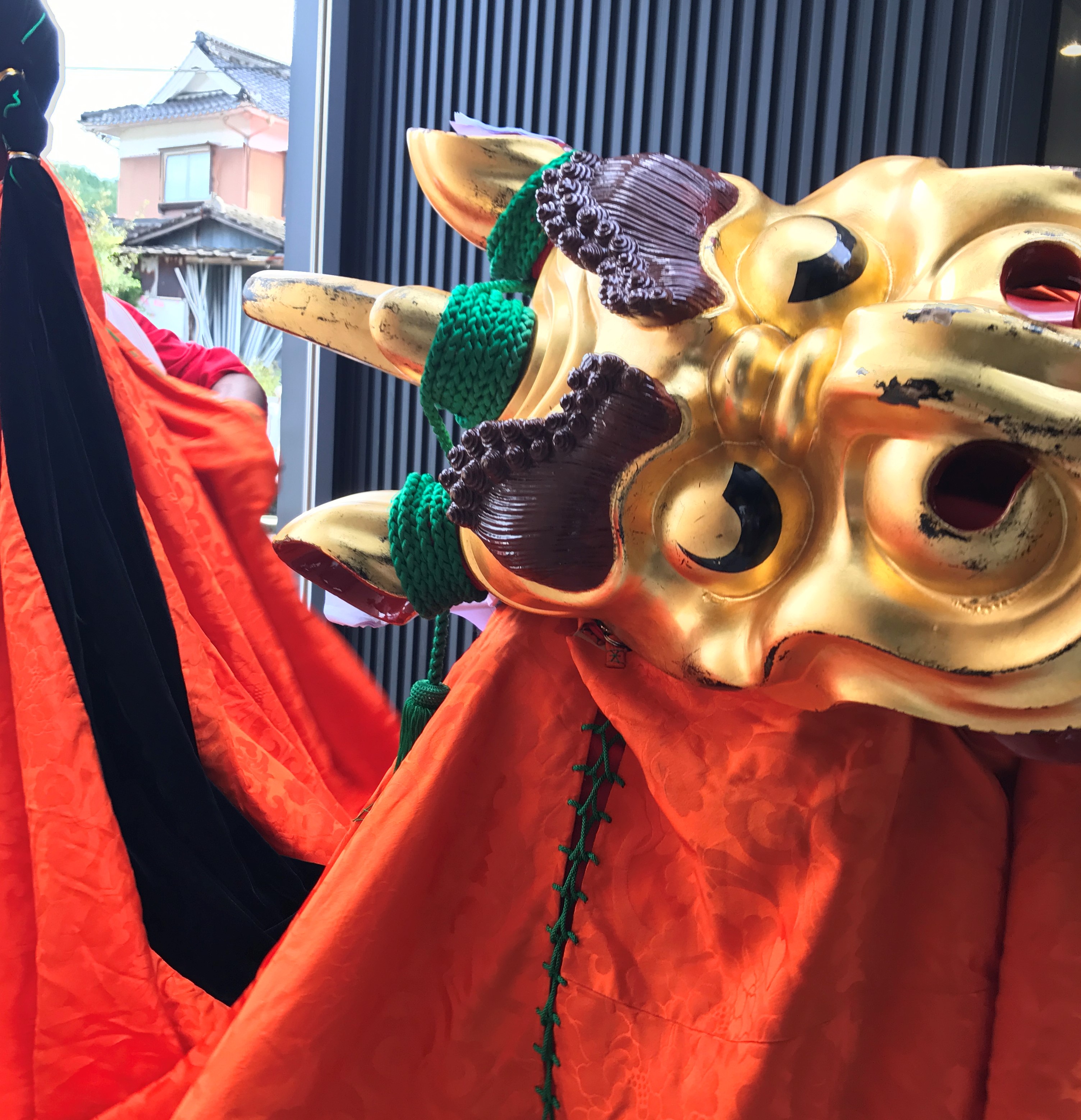 今日は青空 白い雲 獅子舞の朱